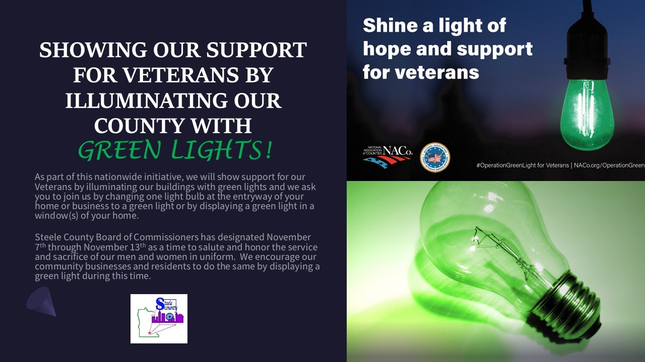 A green light for veterans, as promoted by Operation Green Light, is a symbol of hope, support, and forward movement for veterans as they transition from military to civilian life. The initiative encourages individuals, businesses, and county buildings to display green light